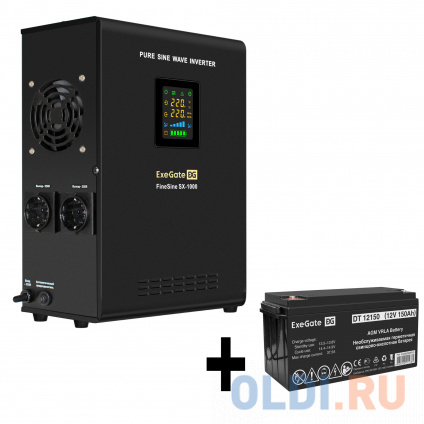 Комплект ИБП EX295997RUS + батарея 150Aч EX282990RUS 1шт (инвертор, синус, для котла, настенный) ExeGate FineSine SX-1000.LCD.AVR.2SH <1000VA / 600W, чистая синусоида, цветной LCD-дисплей, AVR, 2*Schuko, линейно-интерактивный, крепление настенное / универсаль