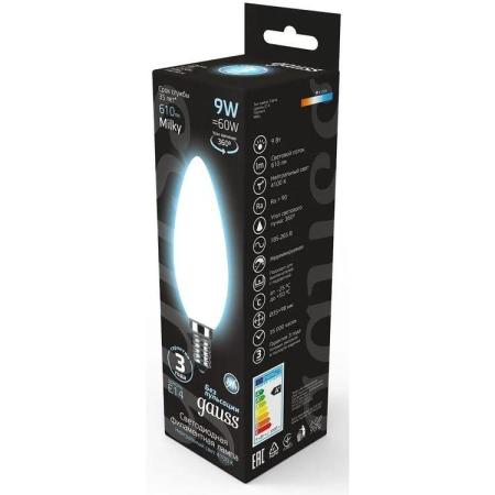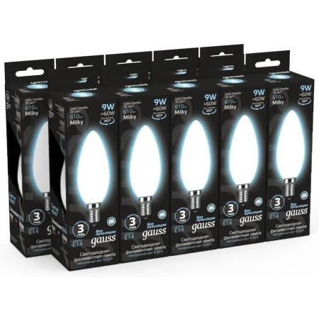Лампа светодиодная Gauss Filament 103201209 9Вт цок.:E14 свеча 220B 4100K св.свеч.бел.нейт. (упак.:10шт)