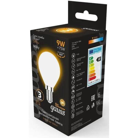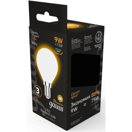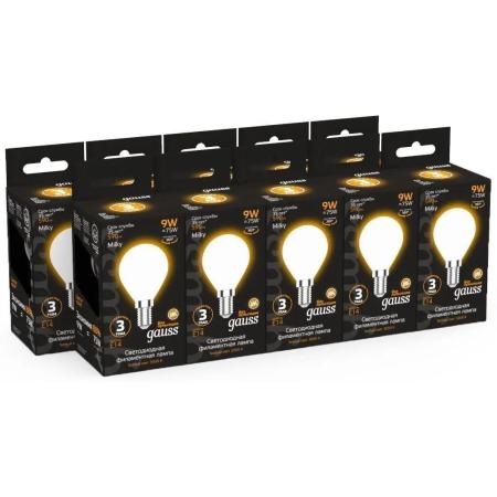 Лампа светодиодная Gauss Filament 105201109 9Вт цок.:E14 шар 220B 3000K св.свеч.бел.теп. (упак.:10шт)