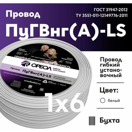 ОРЕОЛ Провод ПуГВ нг А LS 1х6,0 белый 50м 00-00003434