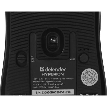 Мышь беспроводная Defender Hyperion, игровая, Bluetooth/Радио, оптическая, USB, USB-C, 12000dpi, черный [52119]