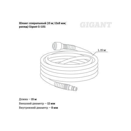 Gigant Шланг спиральный 15 м; 12x8 мм; рапид G-1151