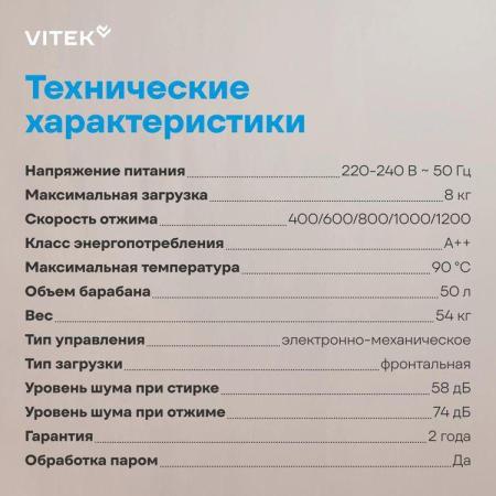 Стиральная машина Vitek VT-WSE8201 класс: A+++ загр.фронтальная макс.:8кг белый инвертор