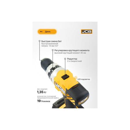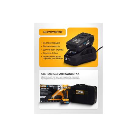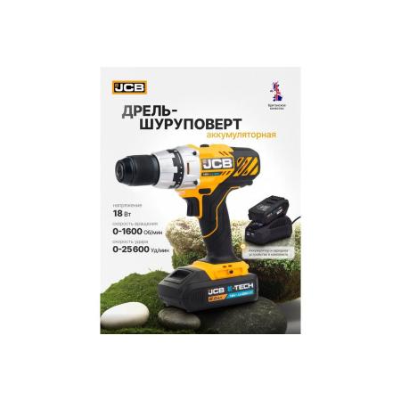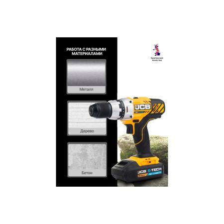 JCB Дрель-шуруповерт аккумуляторная (-18DD-B-E) 18V, max 45Nm в комплекте с зарядным устройством (-18VFC-E) 2.4A и батареей аккум(-20LI-E) 2.0AH JCB-18DD-2X-E(57237)