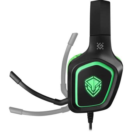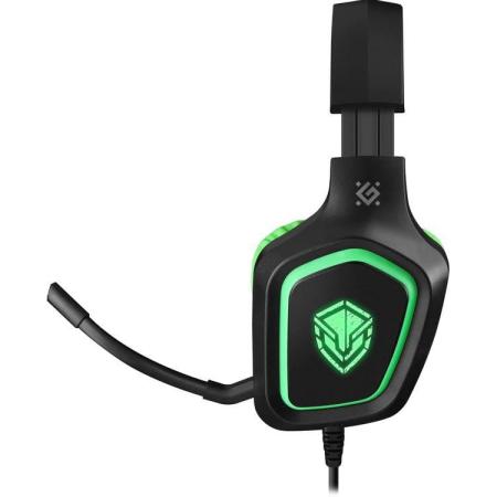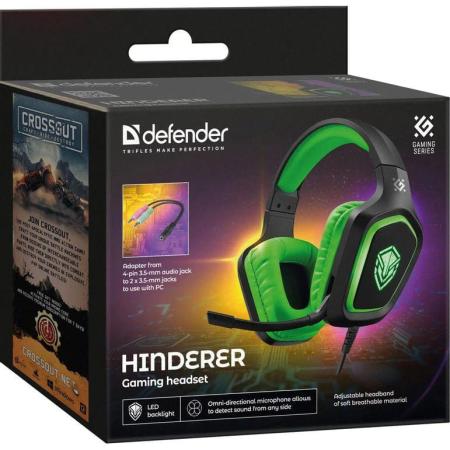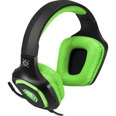 Гарнитура игровая Defender Hinderer, для компьютера/мобильных устройств, накладные, проводные, черный / зеленый [64537]